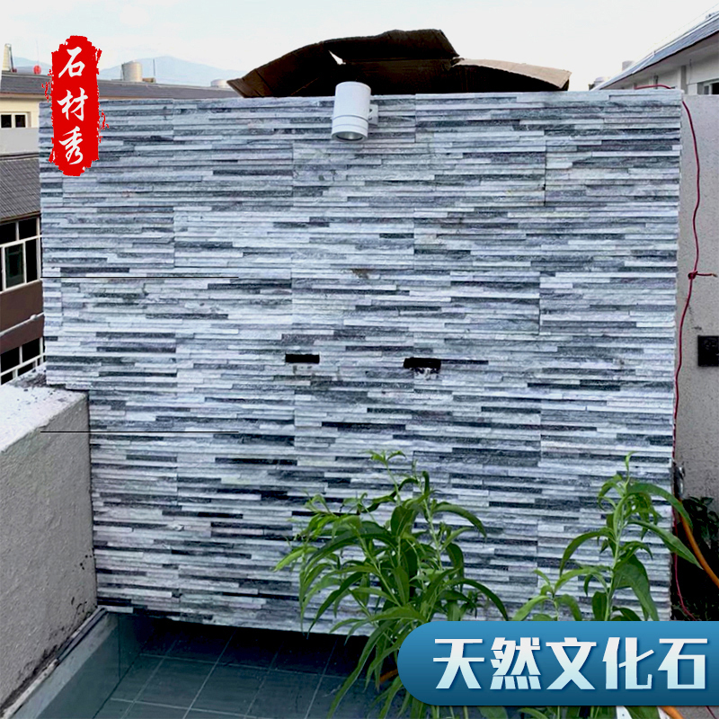 Cultural stone flowing water stone black and white thin strip natural stone pool shop recruit background wall brick water curtain wall wood grain