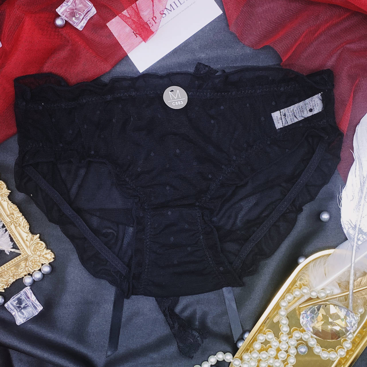 Light extravagant underpants female sensation European and American retro lace embroidered hollowed-out harness mesh yarn transparent fire spicy mid-waist triangular pants-Taobao