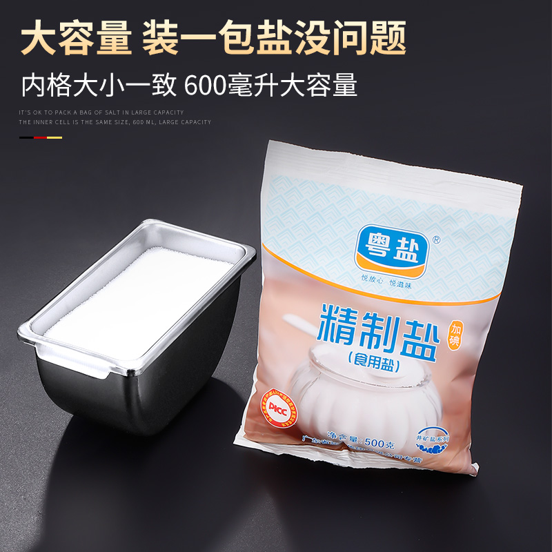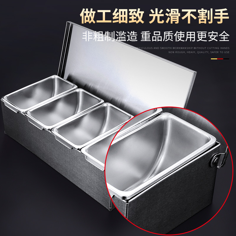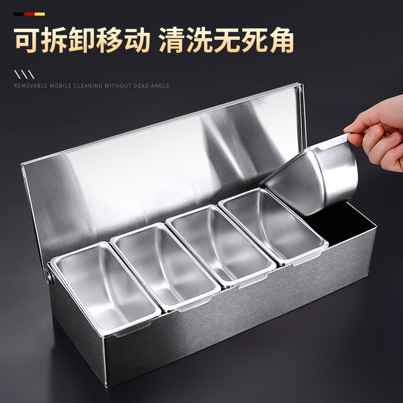 Stainless steel seasoning box seasoning box with lid household kitchen storage restaurant ice powder ingredient box side dish commercial lattice