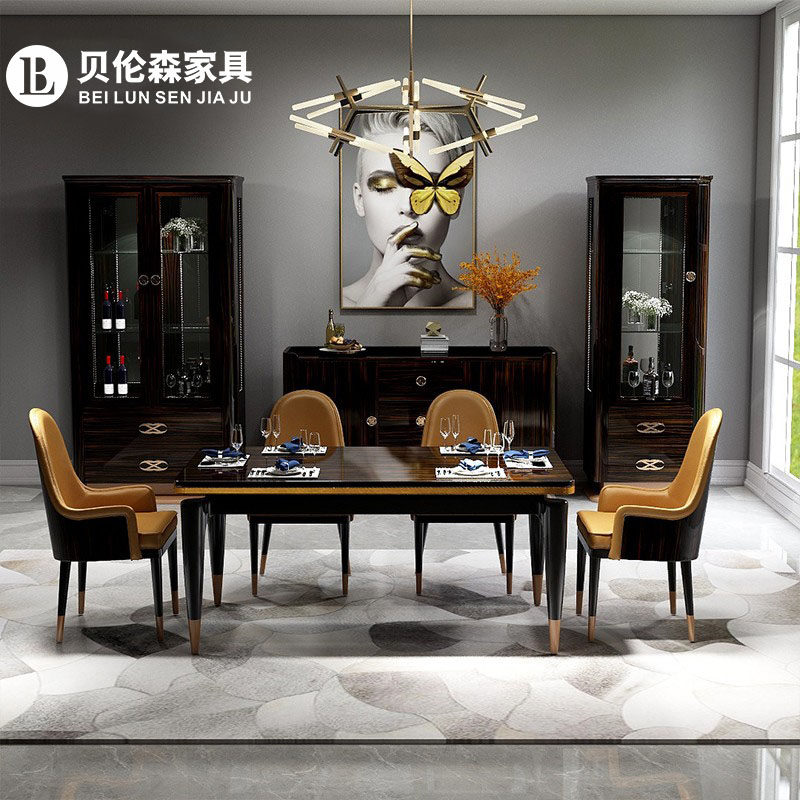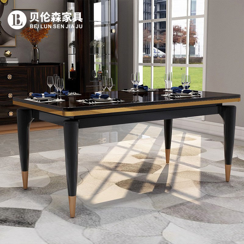 Postmodern Italian marble dining table combination dining room simple 6 people 8 household rectangular table can be customized light luxury dining table