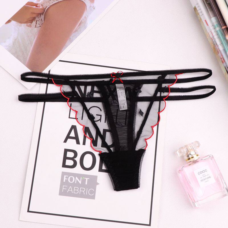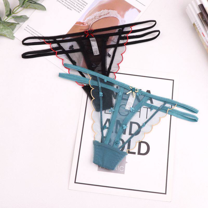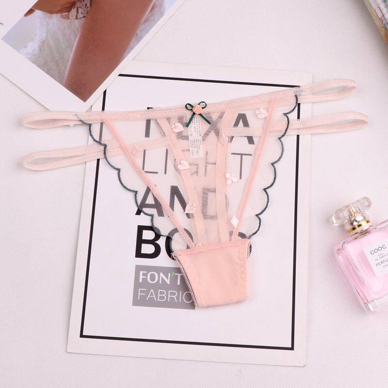 5373 European and American lace Tiny pants T-pants Sexy light and luxurious hollowed-out transparent mid-low-waist Fashion Girls Ensemble Triangle Pants