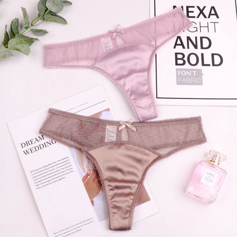 4401 European and American lace emulated silk-tinged pants T-pants underpants women feel light and luxurious hollowed-out fashion triangle pants Chaurette
