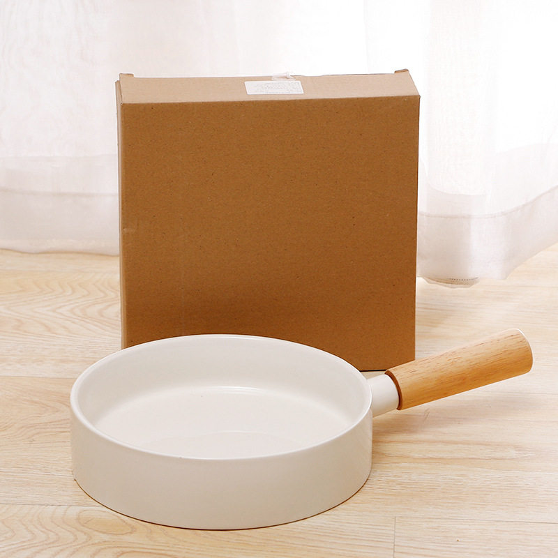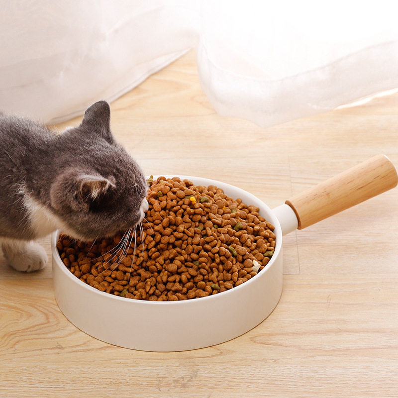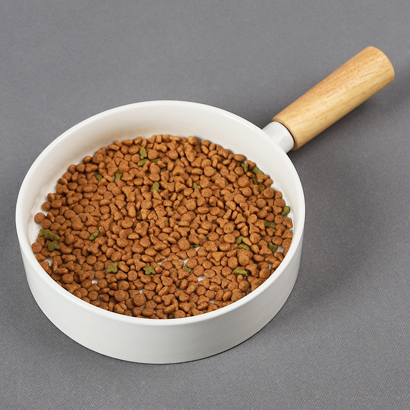 Day Style Ceramic Pet Cat Bowl 7 8 inch with wood to thicken the creative dog bowl with enlarged anti-slip white porcelain bamboo and wood handle