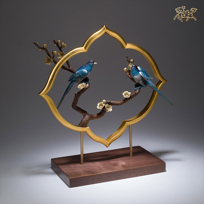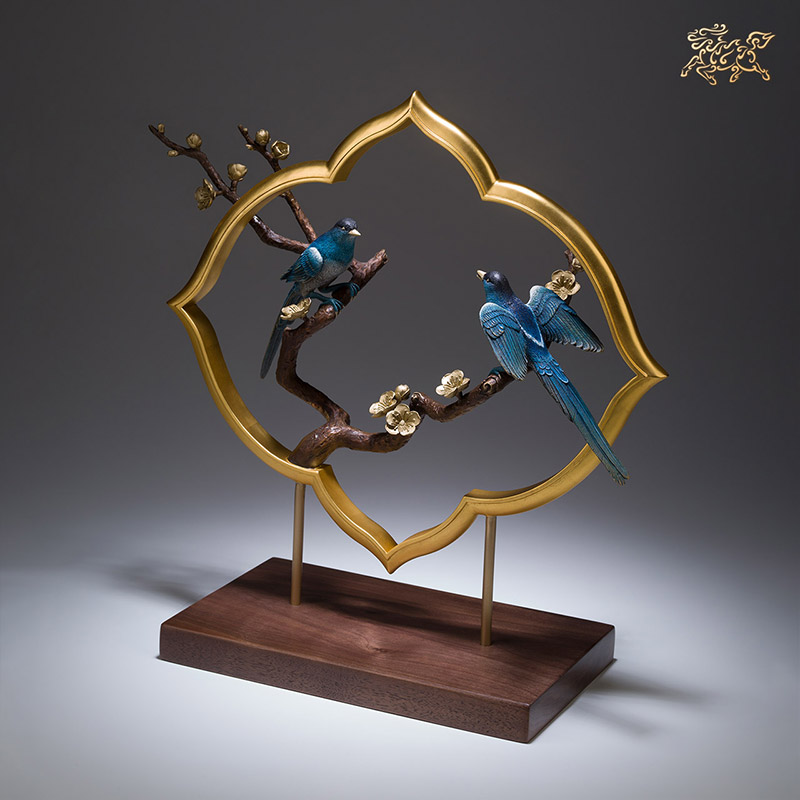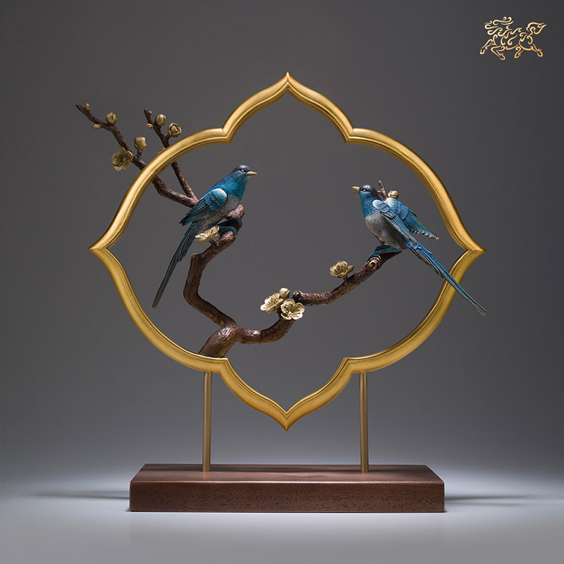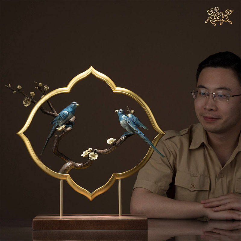 Copper master All copper ornaments "Double Happiness Linmen" Copper crafts Home accessories Magpie living room ornaments