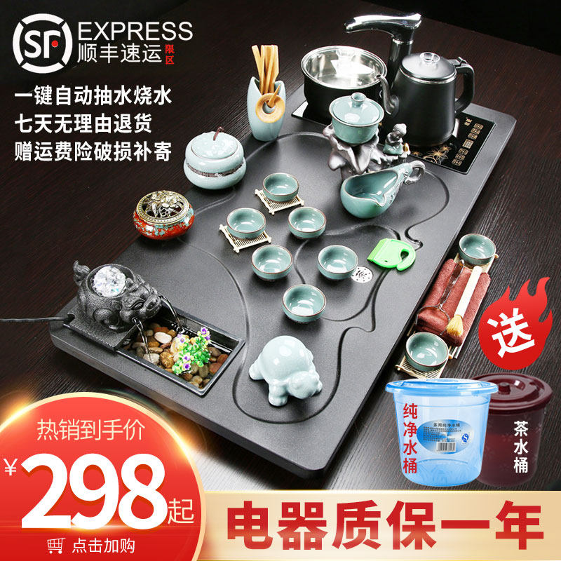 Tea set Household automatic one-piece solid wood tea tray Living room running water tea table Set of Kung Fu ceramic tea pot