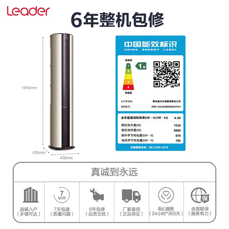 Haier Products Commander-in-Chief Air conditioning 3 Bacteria Cabin Air Conditioning Vertical Cabinet Machine Living Room Warm and warm for home 72WBA81