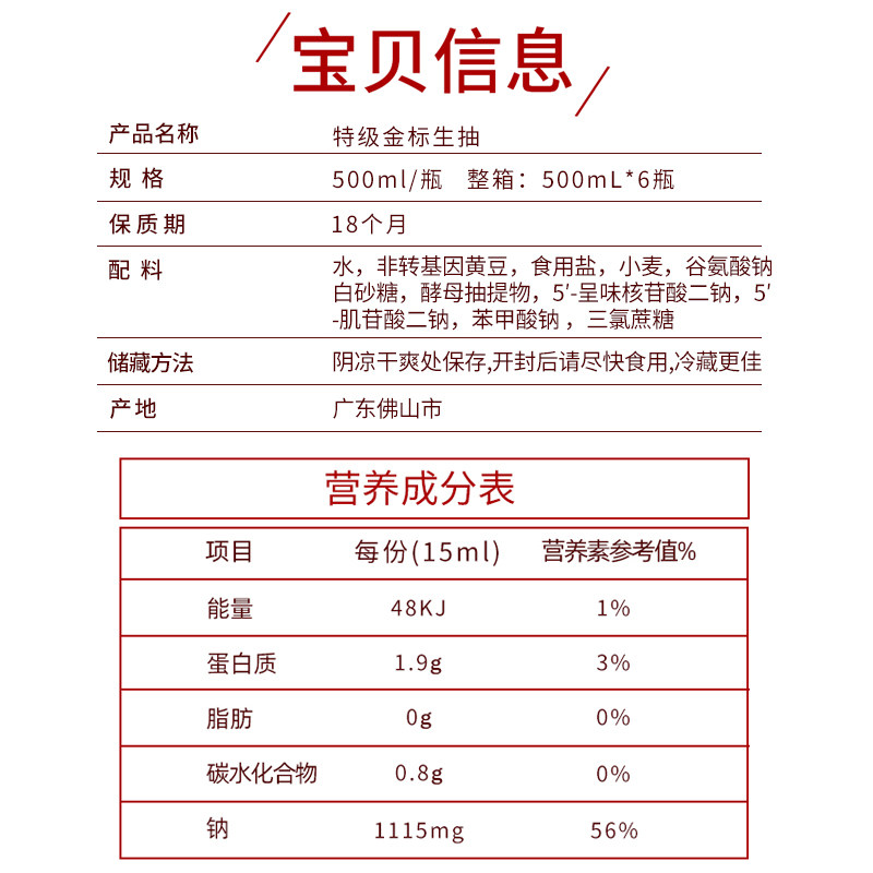 Water non-genetically modified soybean wheat flour edible salt sodium glutamate white sugar yeast extract 5-inosinic acid disodium 5-guanosine acid disodium benzoate sodium triltration sucrose, etc. Actual information on product packaging