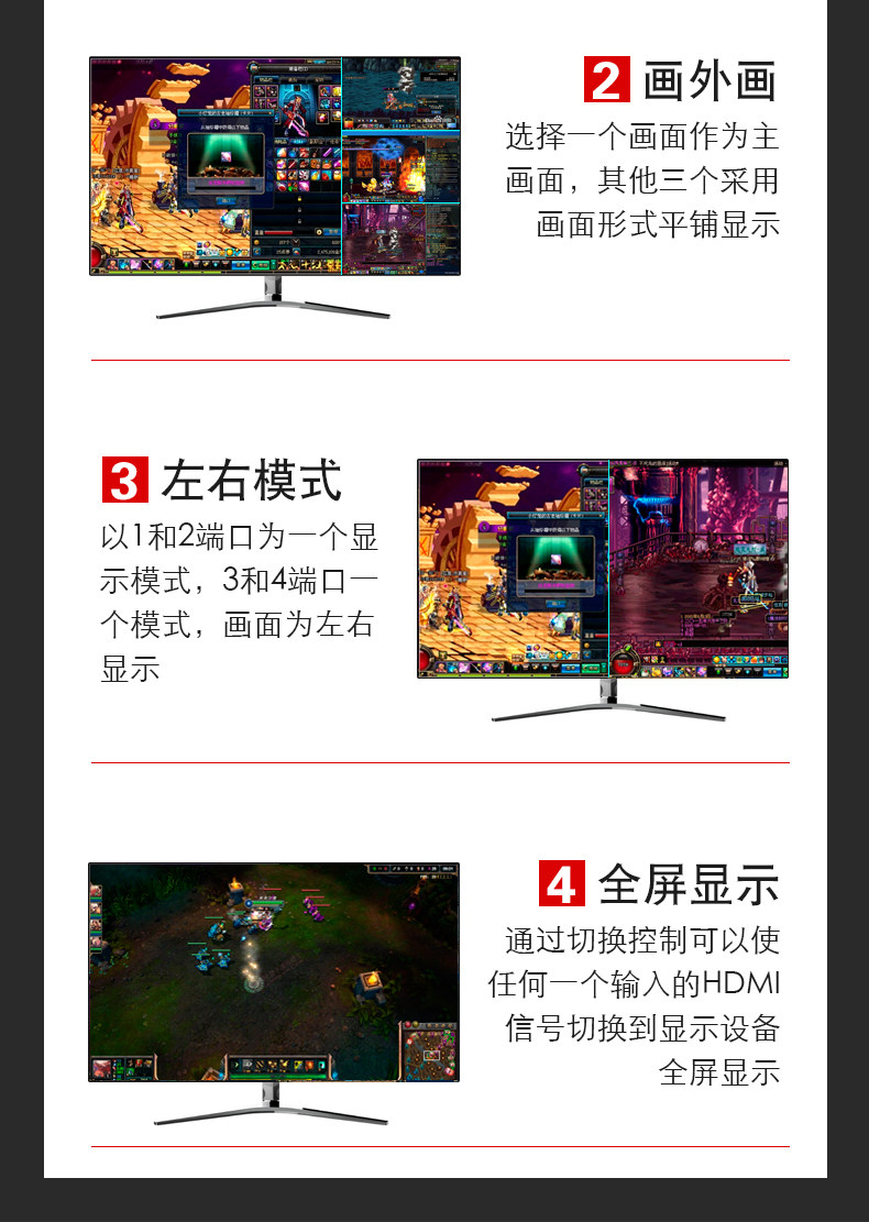 4-port split screen four-in and one-out Warcraft screen switching mode 4-port crossover video four-screen splitter