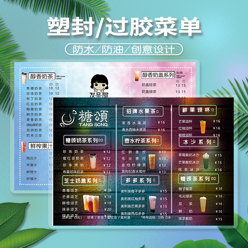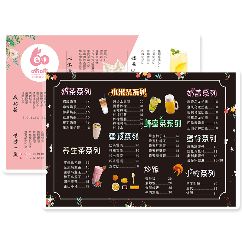 PVC Ballseal menu Design and Creative Customization of milk tea dessert hamburger barbecue shop wine singles hair nail shop