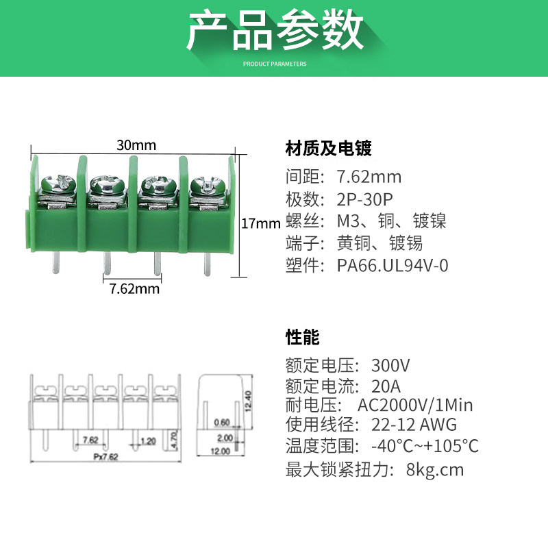 Fence KF7 62mm KF8500 patch terminal splicing green black PCB connector large electricity