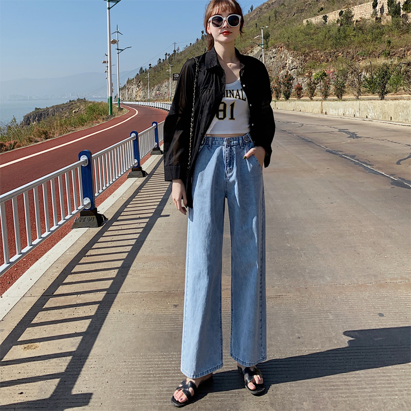 Jeans Woman 2022 Summer new Korean version High waist display slim with high pituitary and broad-legged pants thin