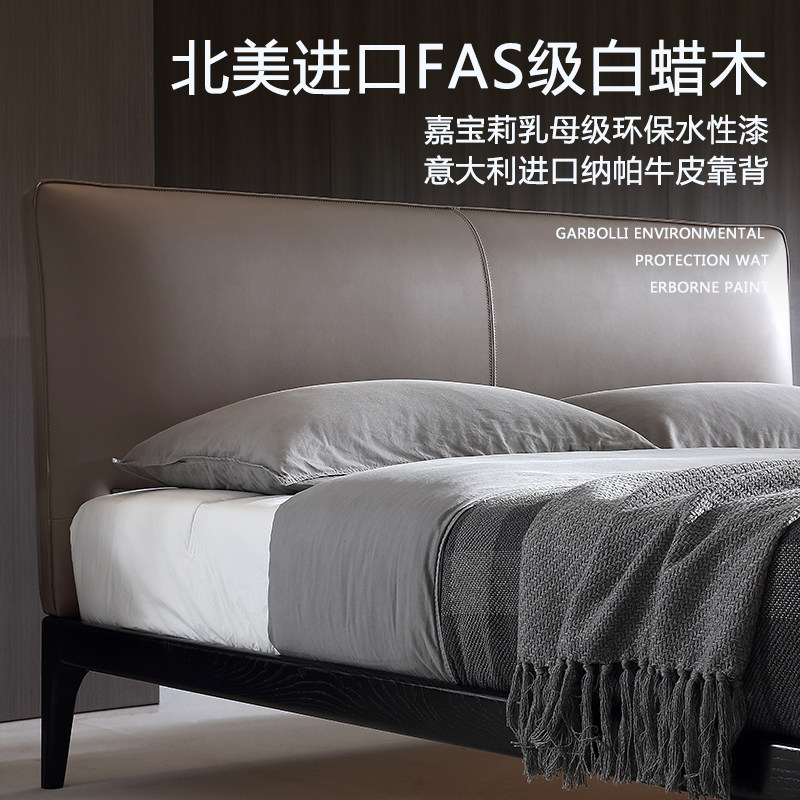 Light luxury modern simple solid wood bed 1 5m1 2 small apartment leather soft bag 1 8m double bed master bedroom Nordic style
