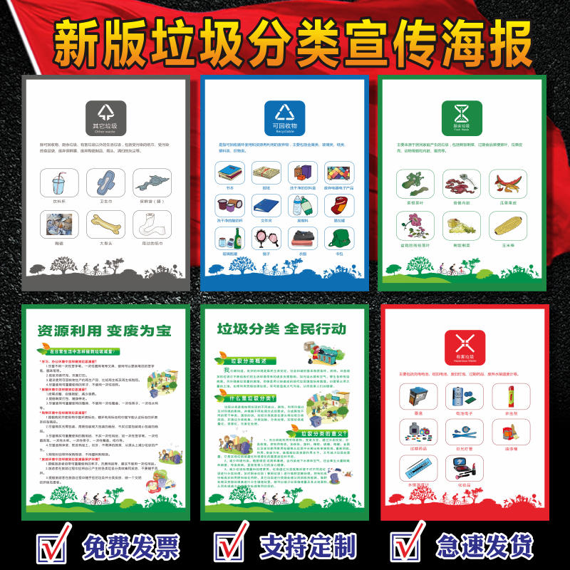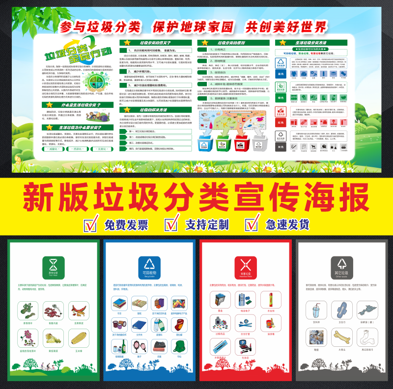 New version of garbage classification knowledge publicity posters Life garbage classification Guide publicity posters Beijing garbage classification publicity posters national standard garbage classification put on publicity bar for publicity painting