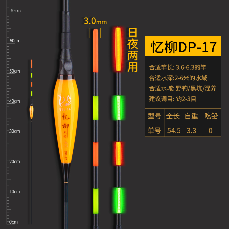 Day and night dual-use run lead drift anti-water fly lead self-standing large object float Luminous super long fish float Anti-water rogue drift