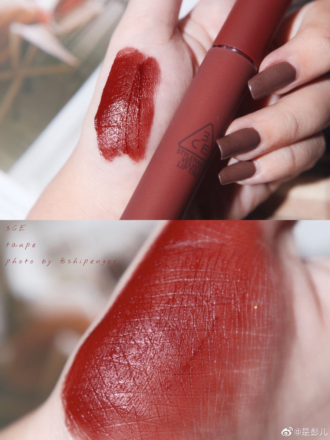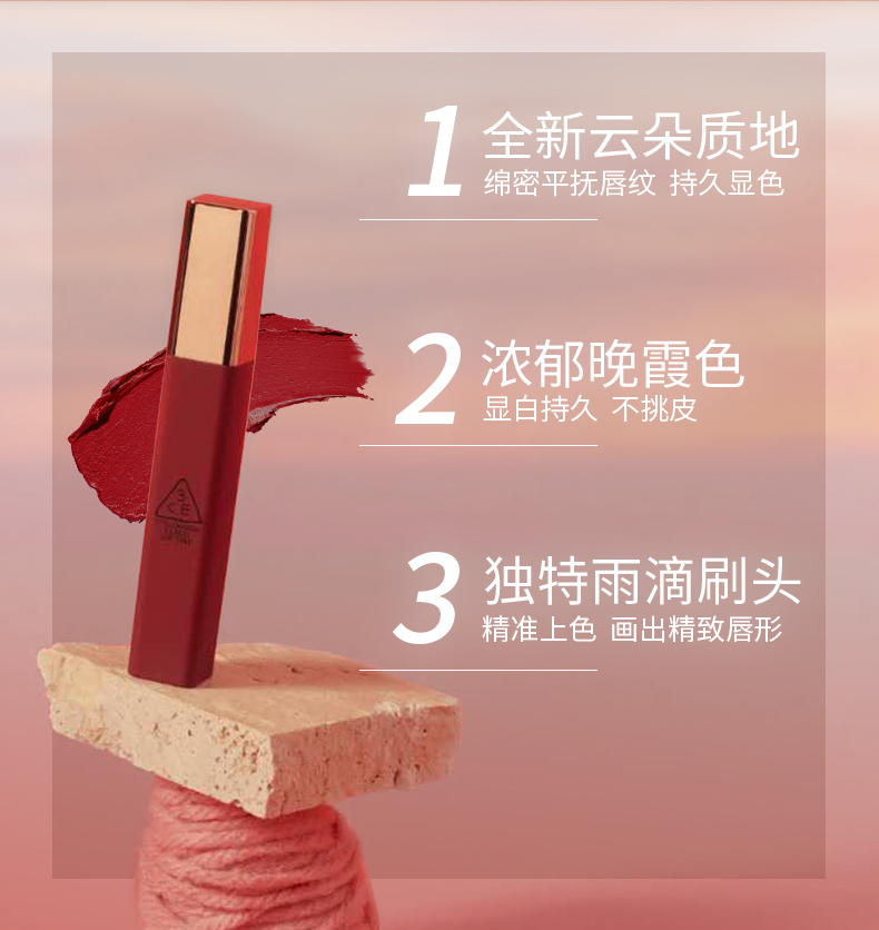South Korea 3ce cloud velvet matt foggy face with makeup lip glazed tomato needful iron rust red TAUPE 100 lap