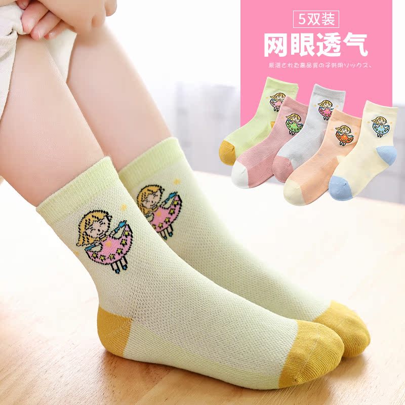 Girls socks thin mesh eye tube socks summer cotton breathable princess girl cute super cute vibrato net red with
