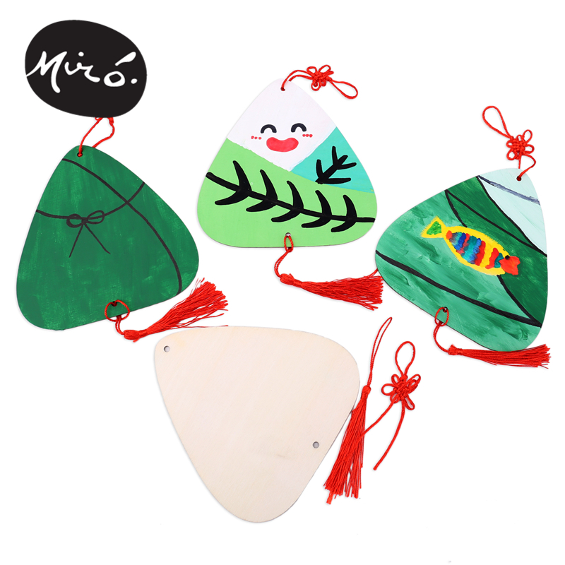 End Afternoon Festival Handmade Diy Wood Rice Dumplings Hanging Accessories Children Art Painting Production Ring-Wound Kindergarten Material
