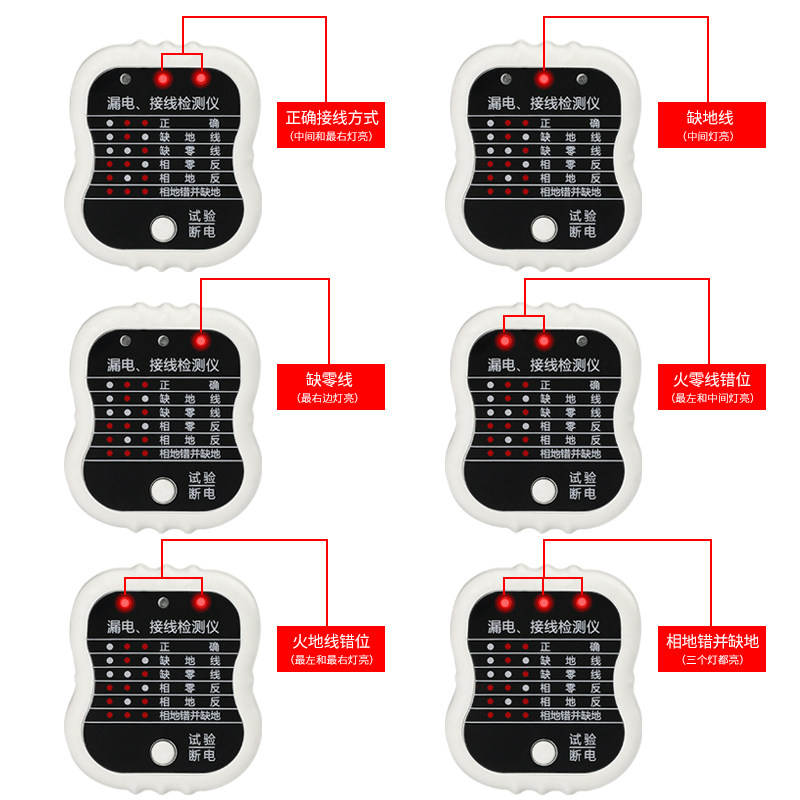Socket test phase detector power supply polarity test electrical leakage tester earth wire test power supply plug