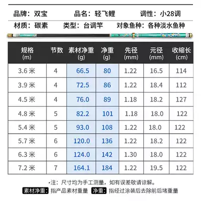 Light flying carp 3 6 meters (Ultra Light hard 28 tune only 66 5 grams) light flying carp 3 9 meters (Ultra Light hard 28 tone only 72 5 grams) light flying carp 4 5 meters (Ultra Light hard 28 Tone)