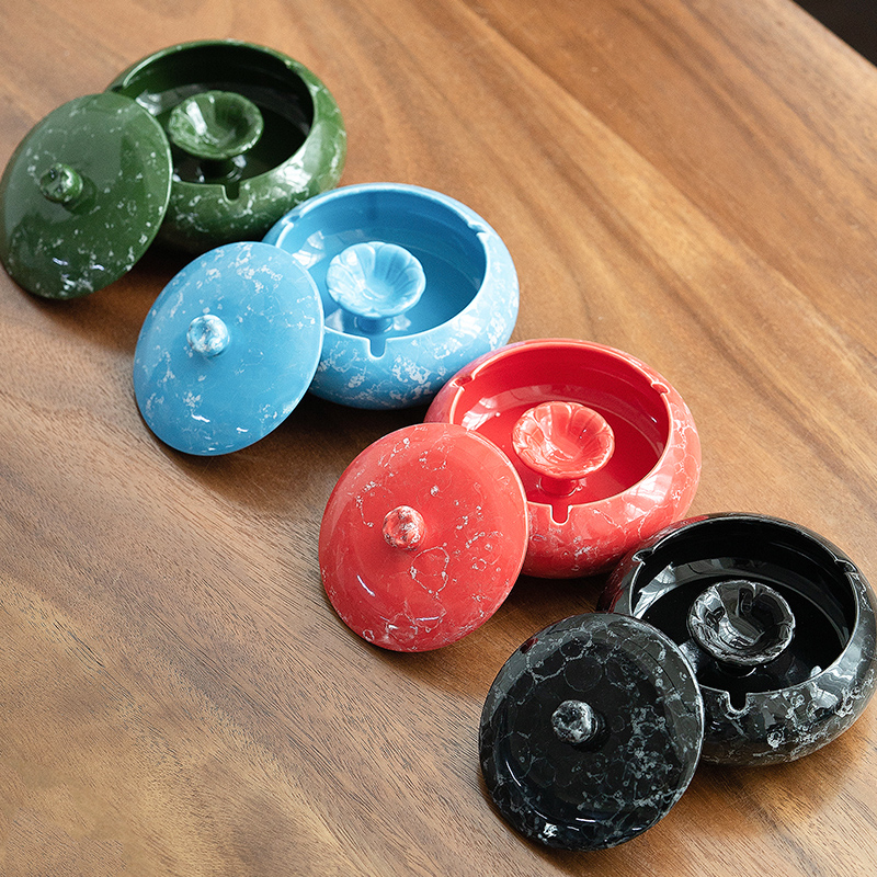 Marble ashtray with cover - ink black marble ashtray with cover - dark night green marble ashtray with cover - Sky blue marble ashtray with lid - auspicious red