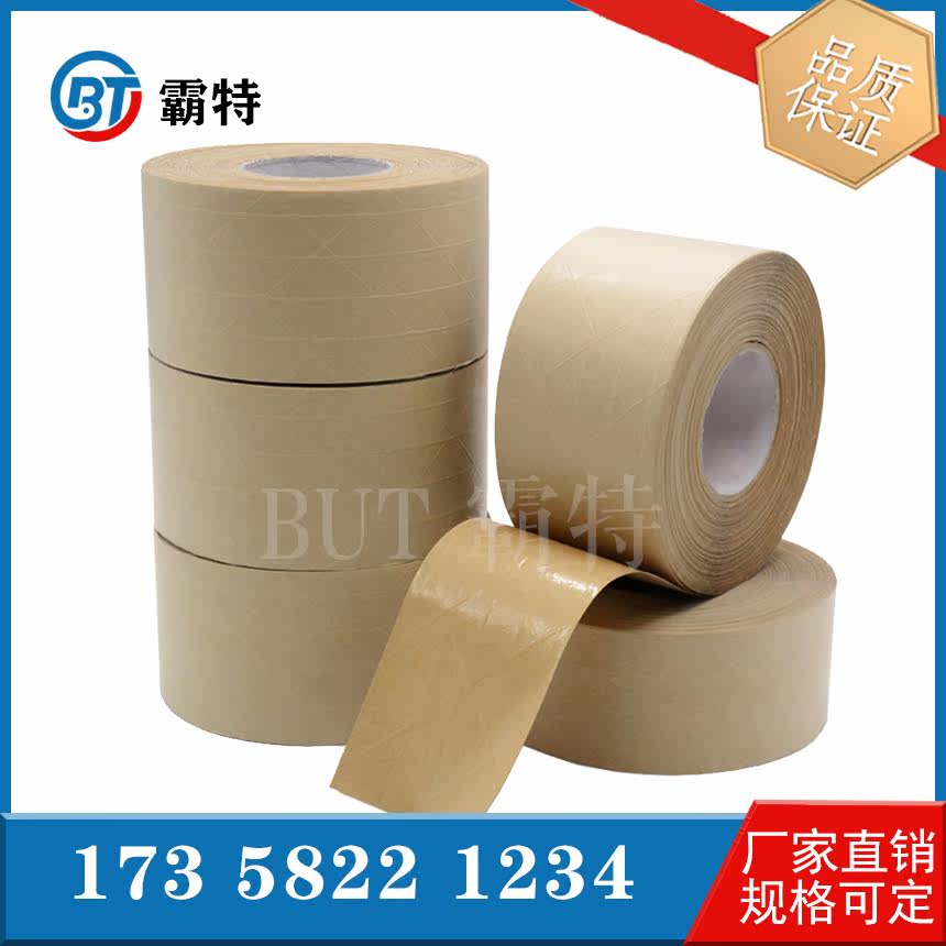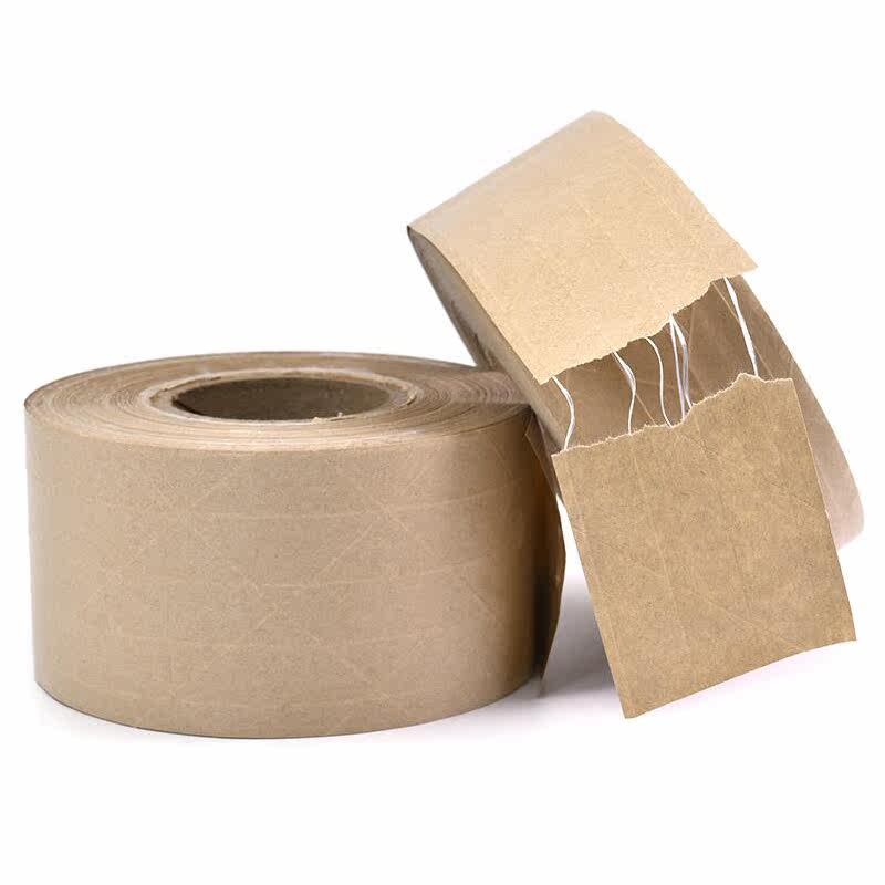 Kraft paper water-free self-adhesive strong clip rib water-based fiber grid box sealing seam repair tape natural color perforated tape
