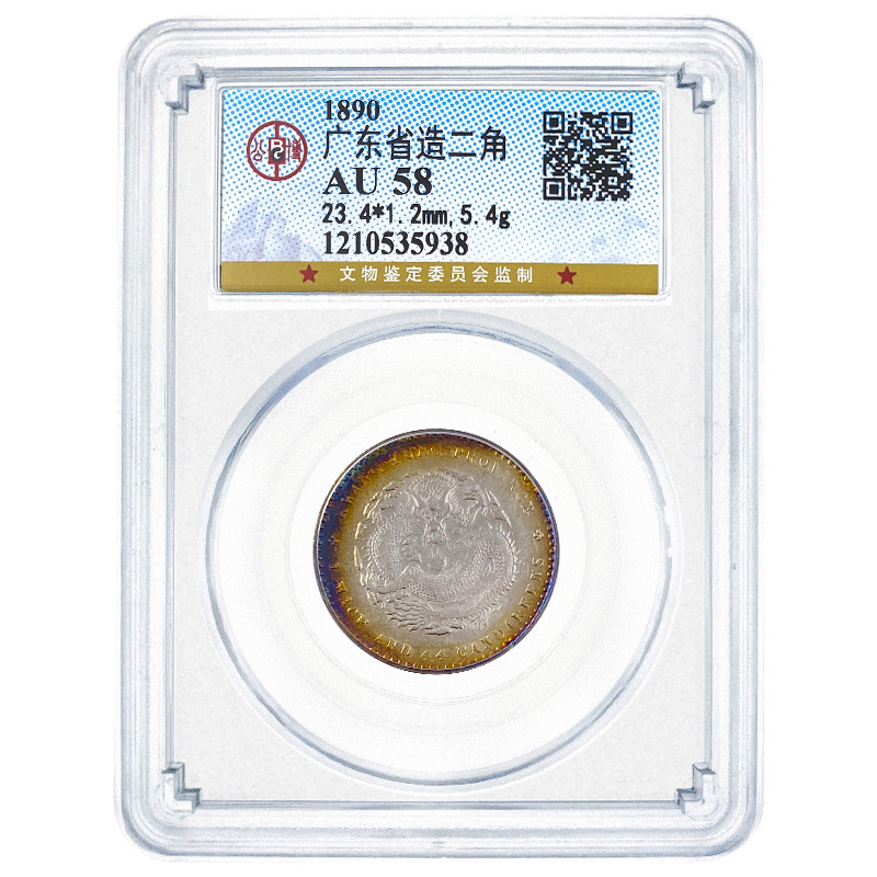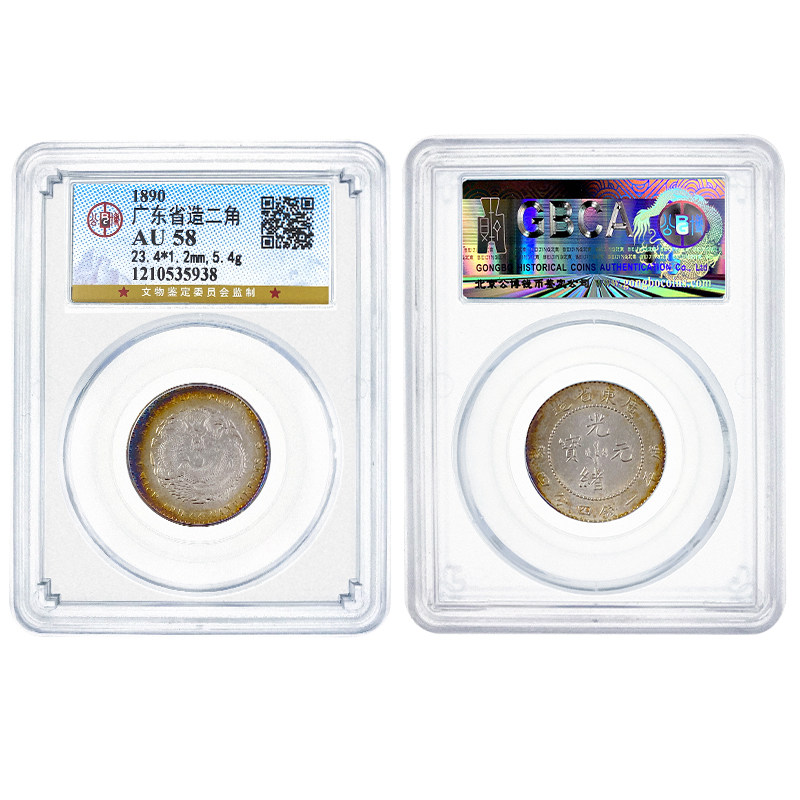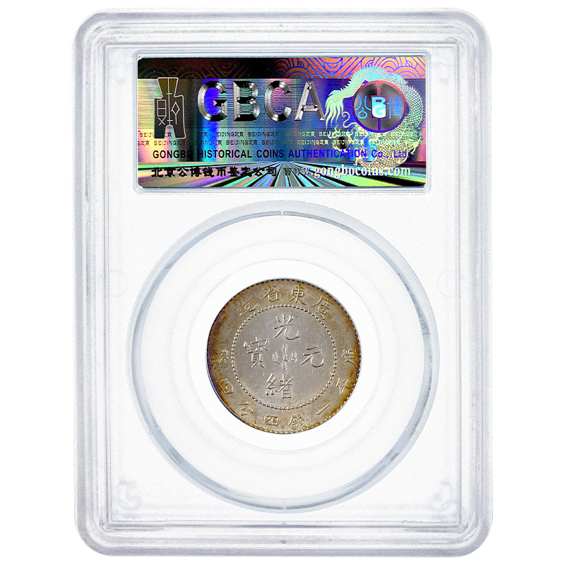 (Gongbo AU58) Guangdong Province made two corner silver coins Guangxu Yuan Bao Silver Yuan with five colorful bag paste coins