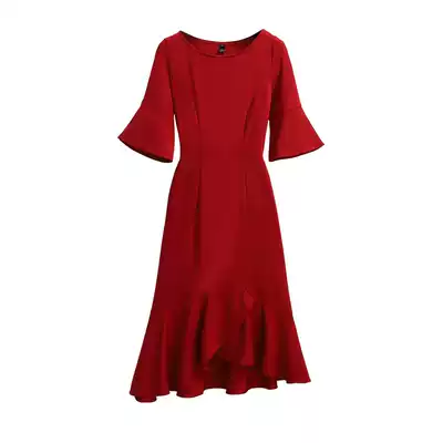 Classic temperament medium and long version of the red dress female summer small slim slim dress can usually wear a fishtail skirt