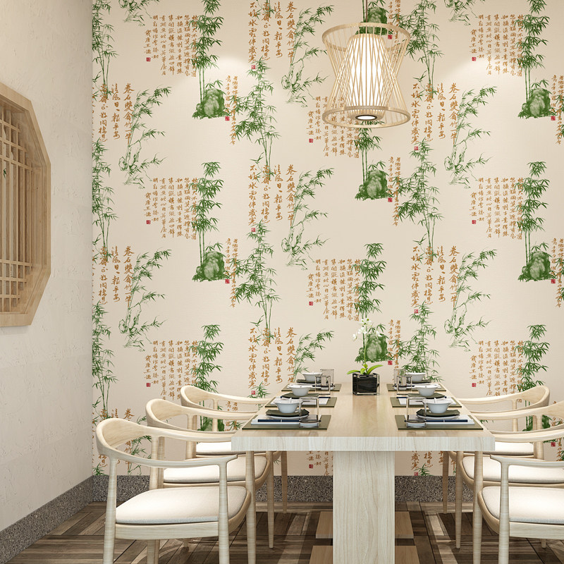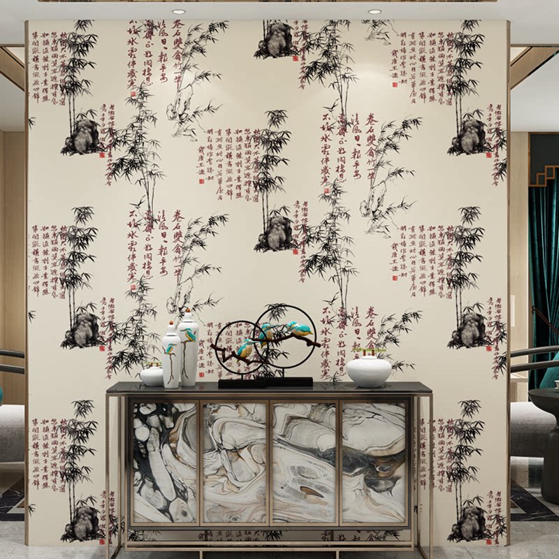 Chinese classical poetry calligraphy mountain stone bamboo pattern wallpaper hotel teahouse private room box background wallpaper