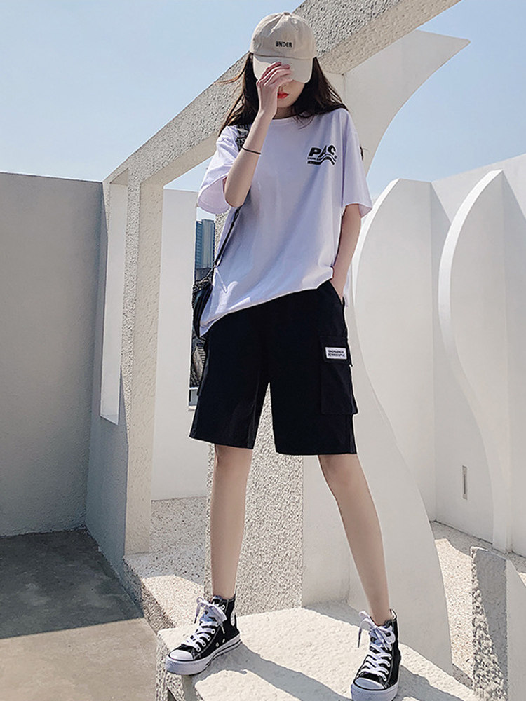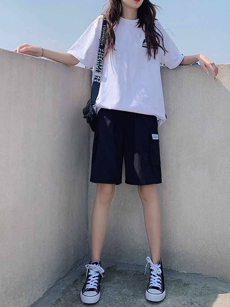 Tooling shorts female straight cylinder loose high waist display slim harbour taste bf Wind 2021 Summer 50% Pants Sports Ins Tide