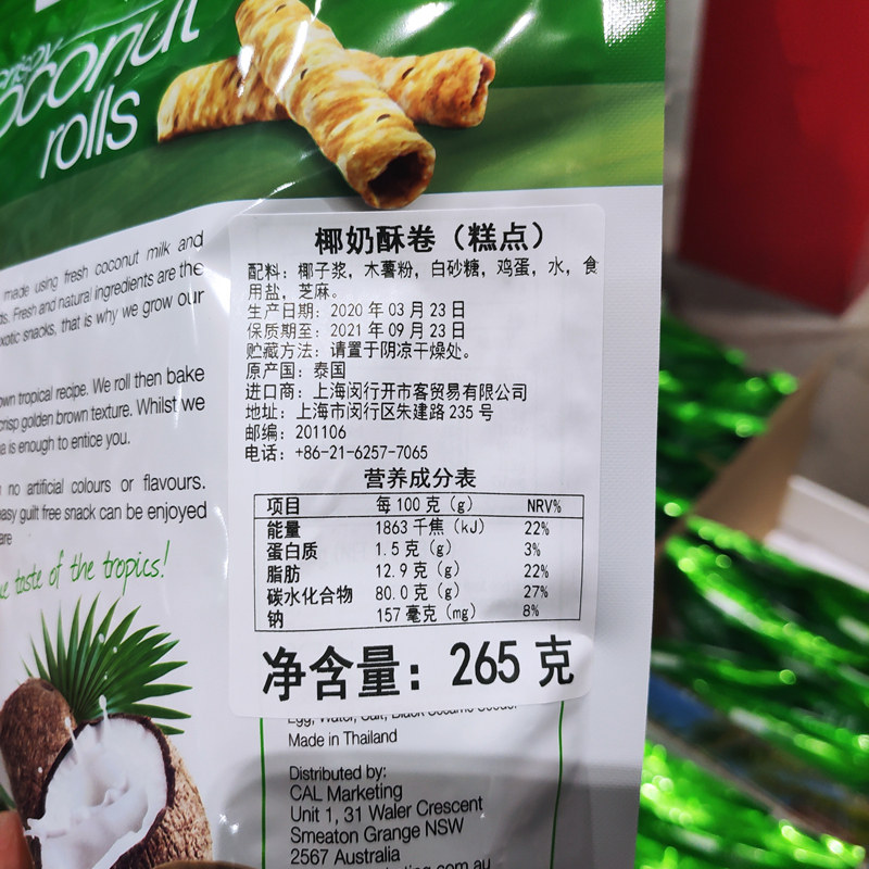 costco Shanghai Kai Coconut Roll Coconut Creek Cream Creaky Sesame Sacca Snacks 265g
