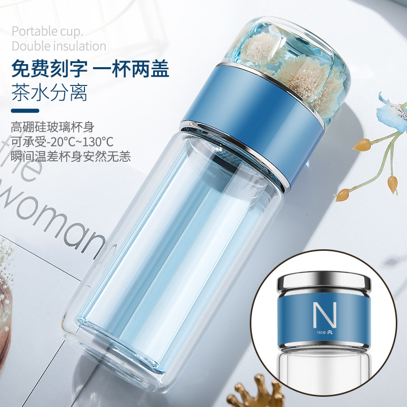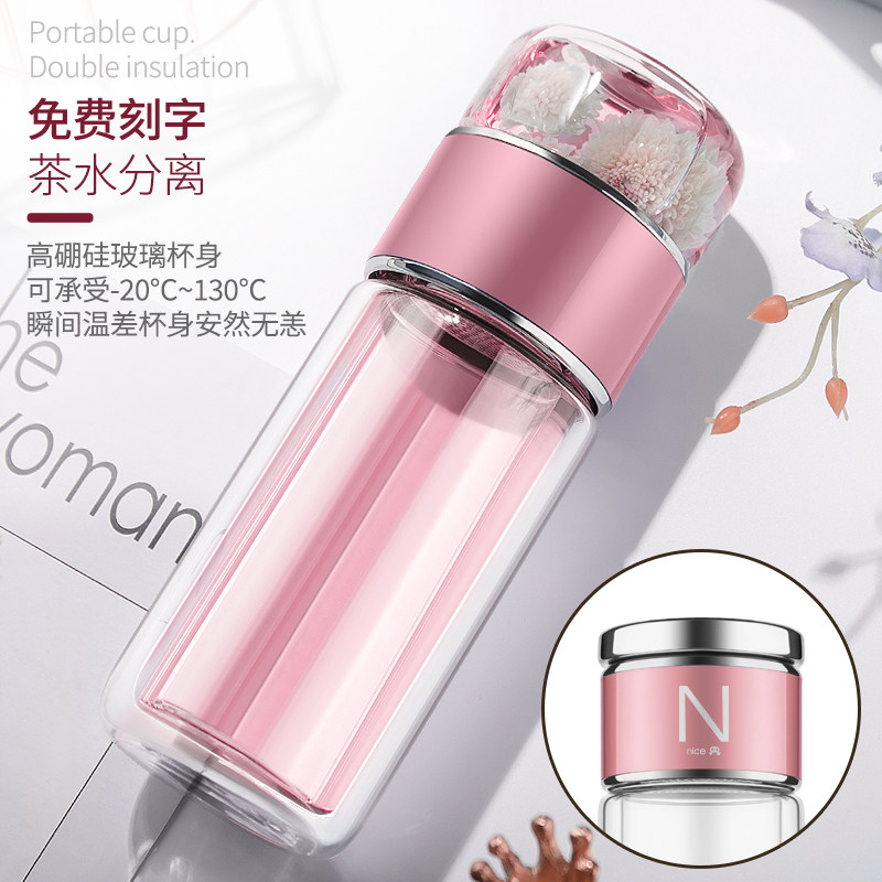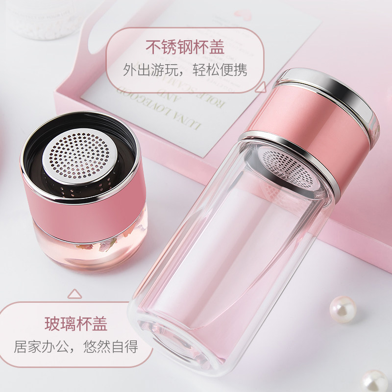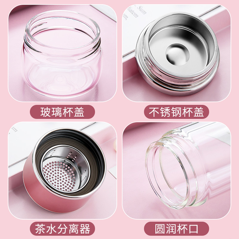 Tea separation bubble tea cup men portable double covered water cup female net cute filter transparent double glass