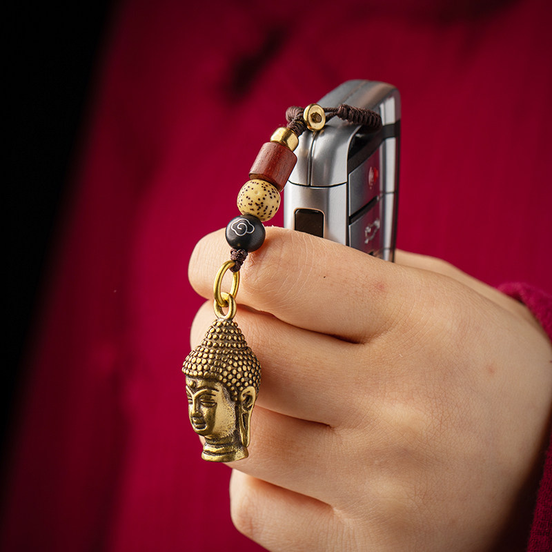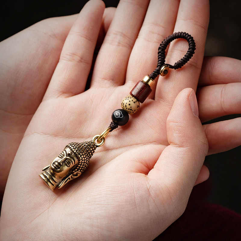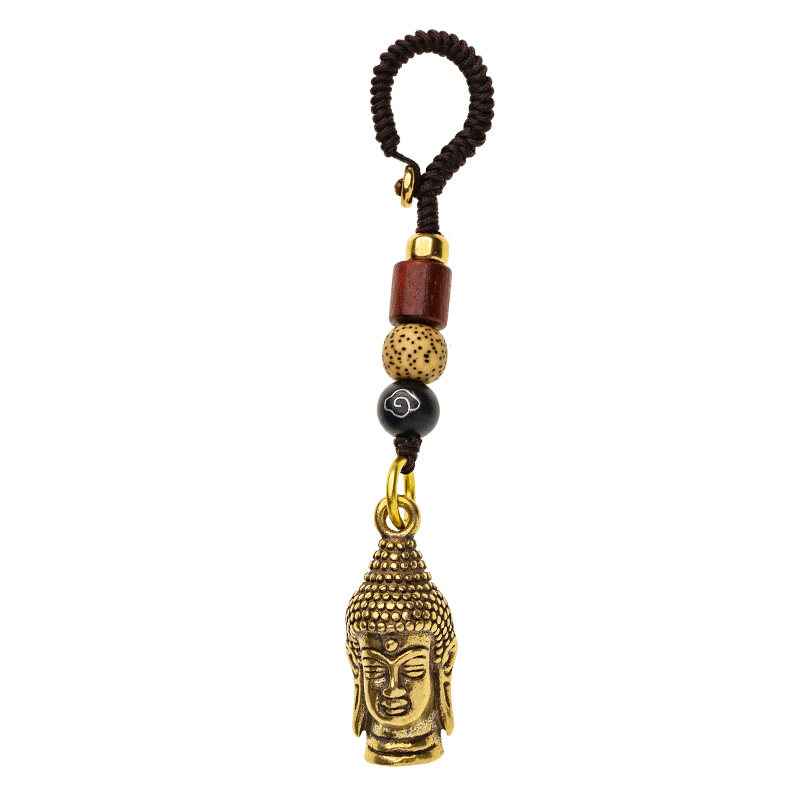Pure Brass Pendant Dainichi Tathagata Keychain Small Pendant Amulet Buddha Head Buddha Statue Amitabha Creative Gift