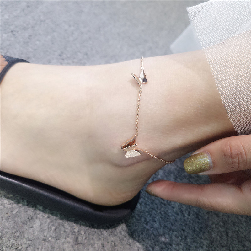Mori butterfly anklet female titanium steel does not fade foot chain sexy niche design Korean version of the summer simple accessories trend