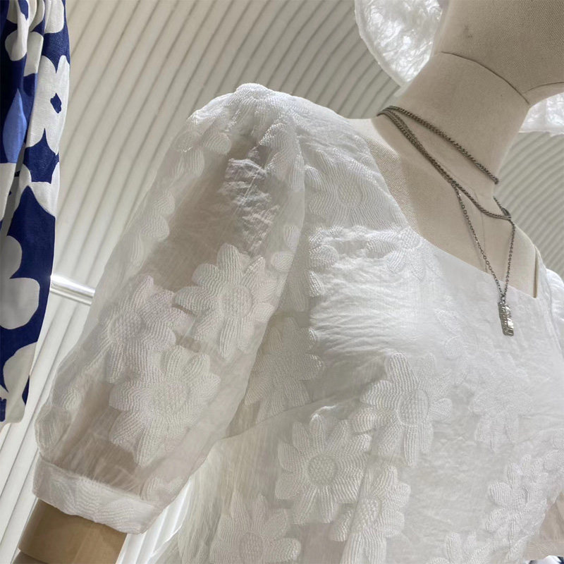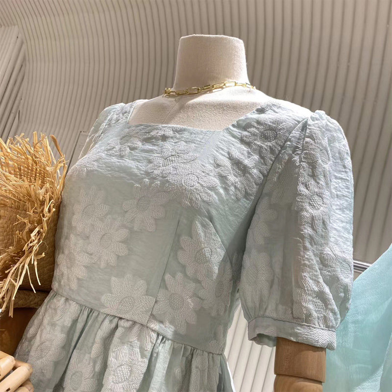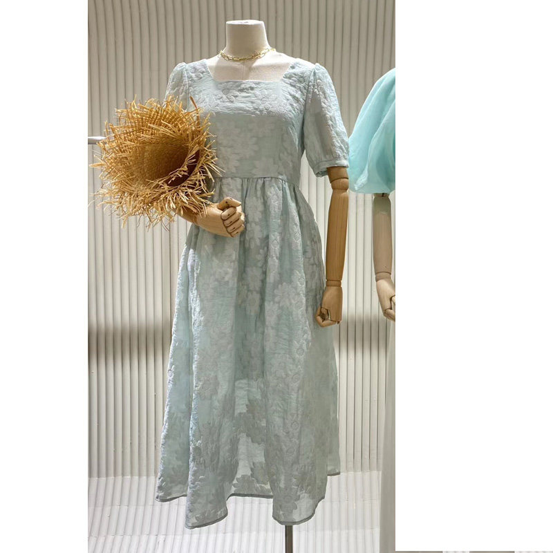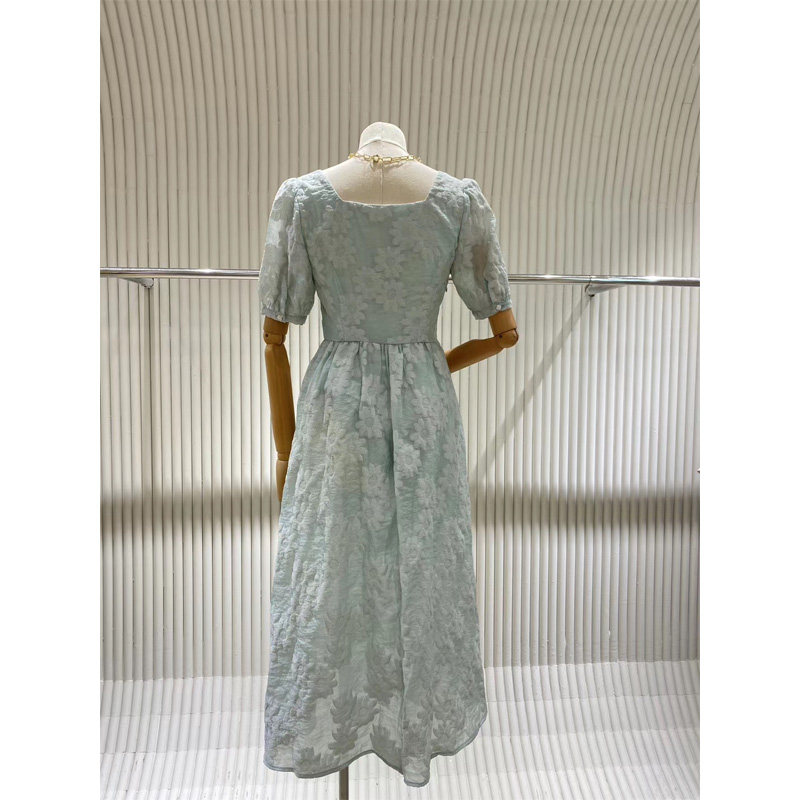 2020 new women's clothing loose fashion temperament lace slim summer square collar mid-length version DS dress women