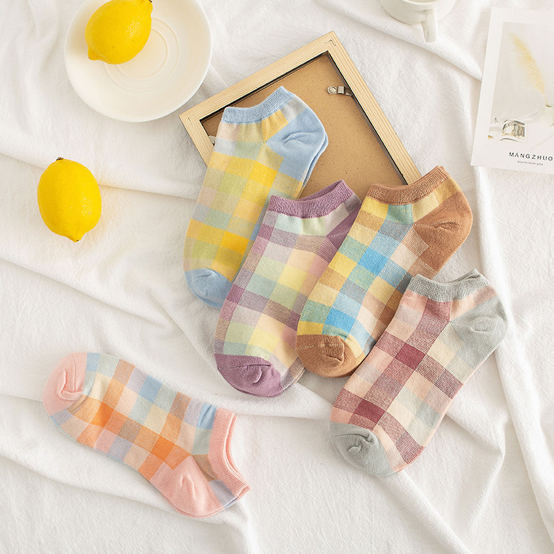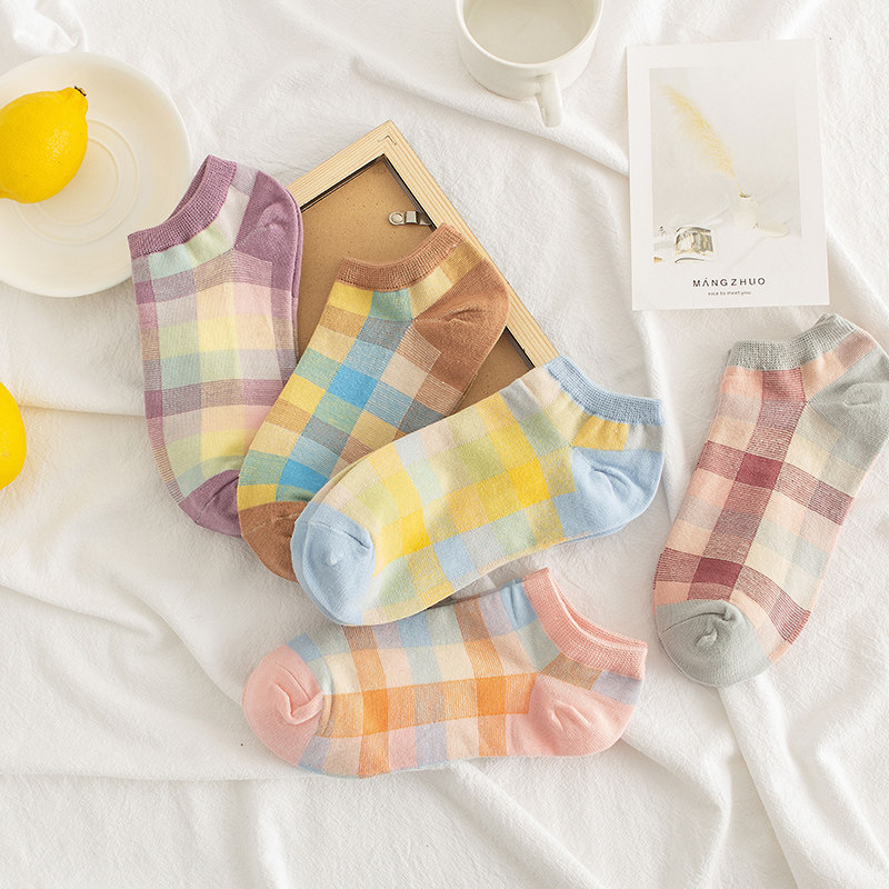 Fresh and contrasting color plaid boat socks female summer Korean Japanese cute sweet girl heart student socks socks shallow mouth