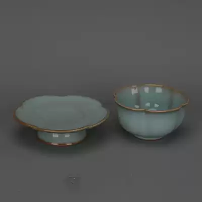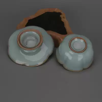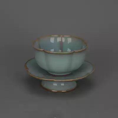 Song Ru kiln sky green glaze open piece melon edge lotus leaf mouth Cup Cup Cup Cup imitation Song Dynasty porcelain antiques home decoration ornaments