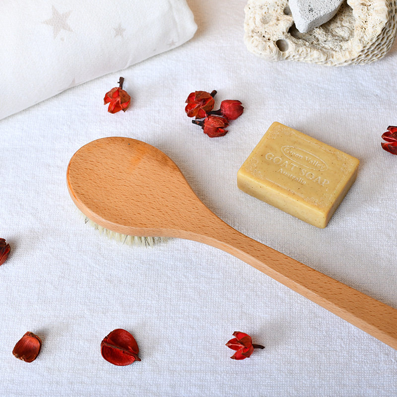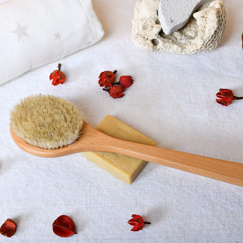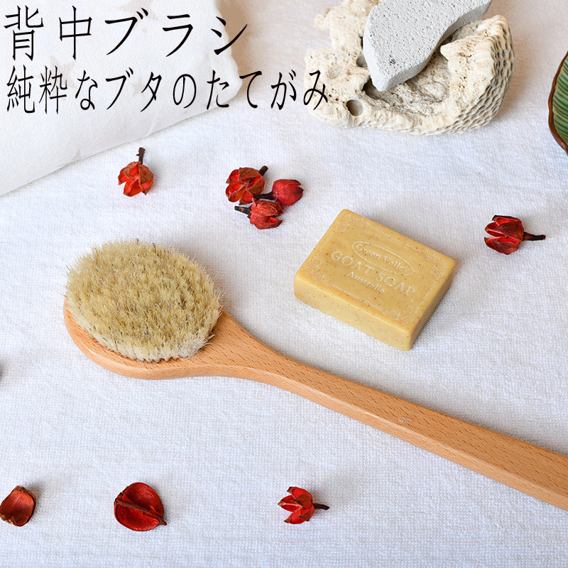 Japan bath brushed pig mane body brushed bath brush soft hair rubbing mud brown hair brush bath back dry brush deity