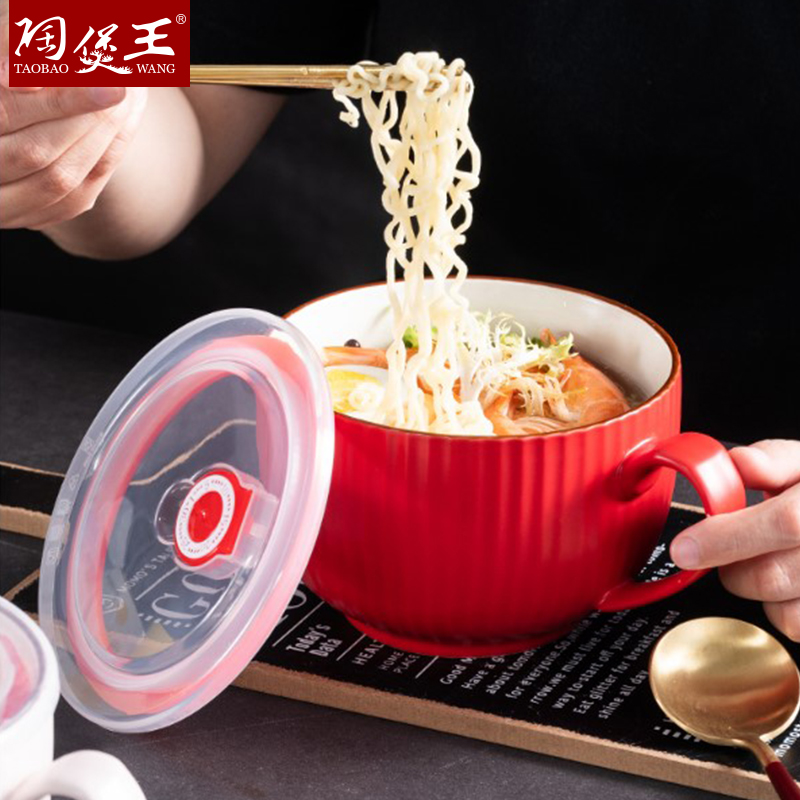 Potter King Cup Raffle Bowl with covered ceramic bowl with handle student dorm room lunch box