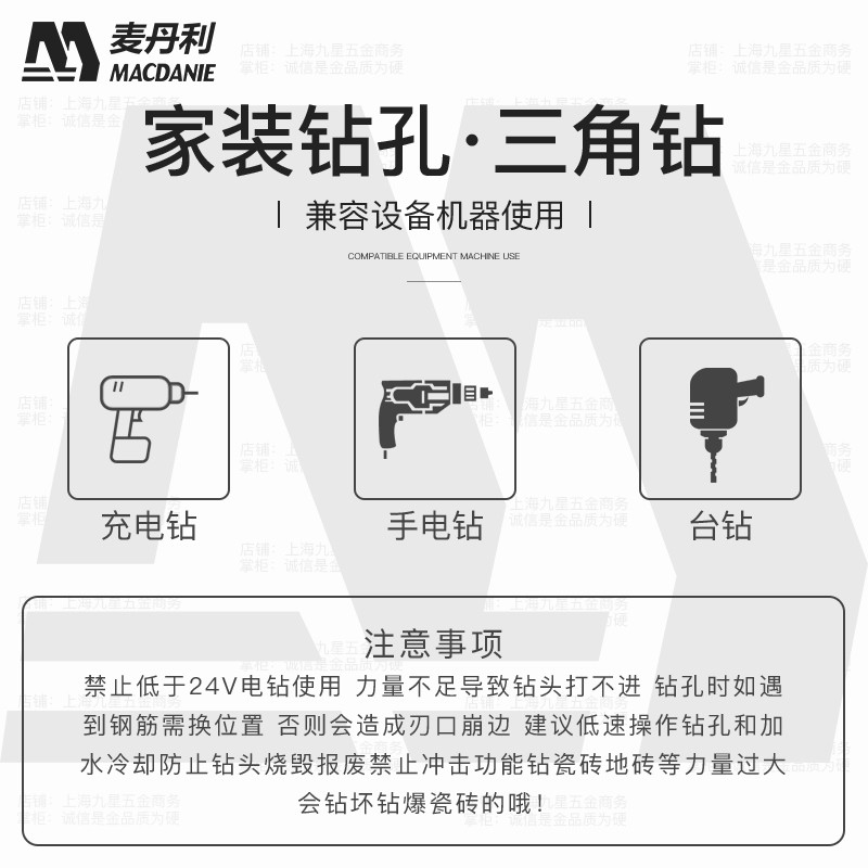 Alloy Swivel Head Full Tile Dry Punching Drill Bit 6mm8 10 12 Mighty German Ultra Hard Glass Triangle Drill