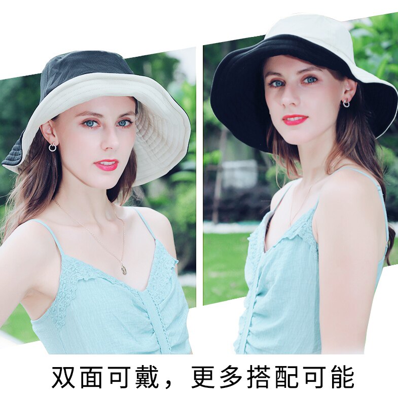 High-quality fisherman hat double-sided female summer Japanese foldable anti-UV sunscreen hat sunshade hat beige