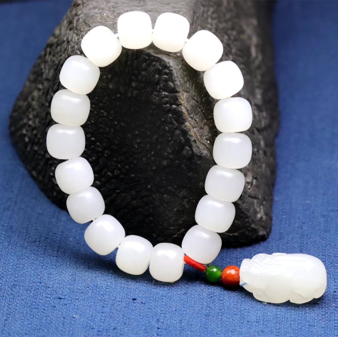 Xinjiang and Tian Yuhands Aged Pearl Apple Barrel Pearl White Jade Bracelet White Jade Bracelet for men and women customizable