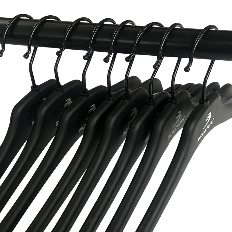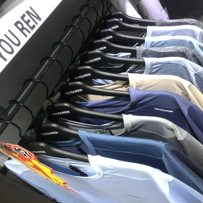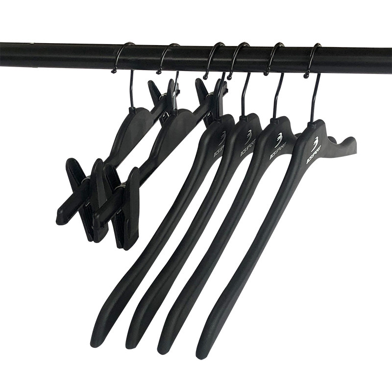 Clothing Store Narrow Shoulder Clown Slim Clothes Special Hanger Black Plastic Sportswear Hanger Anti Slip Without Mark Outlet Hanger
