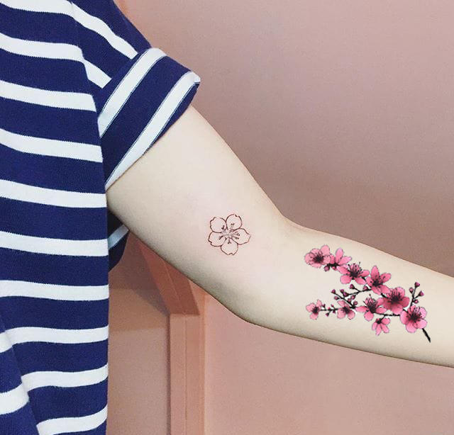 Tattoo Sticker Waterproof Female Flower Pattern Persistent Collarbone Arm Ankle Sexy Ancient Wind Cherry Blossom Emulation Sting