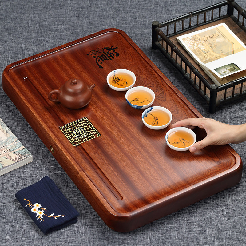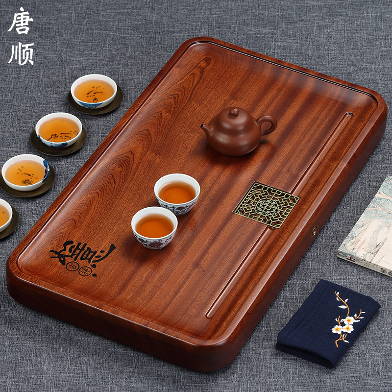 Solid wood tea tray household rosewood whole piece of log tea table large simple single-layer drainage Chinese kung fu tea tray