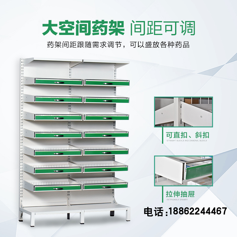 Open medicine rack with cabinet medicine tray A open medicine rack B traditional Chinese medicine rack single-sided rail medicine rack single-sided trackless medicine rack double rail medicine rack double trackless medicine rack layered medicine cabinet ladder dispensing table outpatient adjustment table