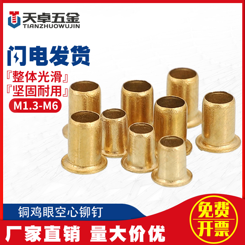 Brass hollow rivet corn buckle rivet copper parts punch M1.3M1.5M1.7M2M2.5M3M3.5M4M5M6
