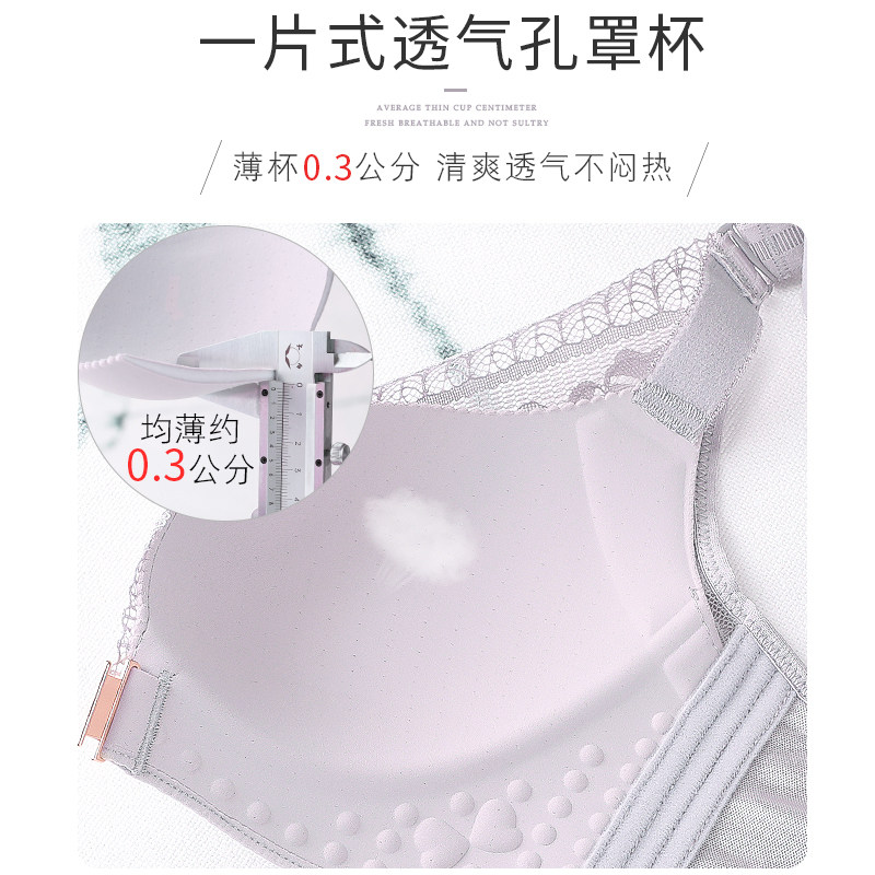 Summer ultra-thin small-breasted underwear ladies suit without steel ring gather on the front buckle large size fat MM beauty back bra