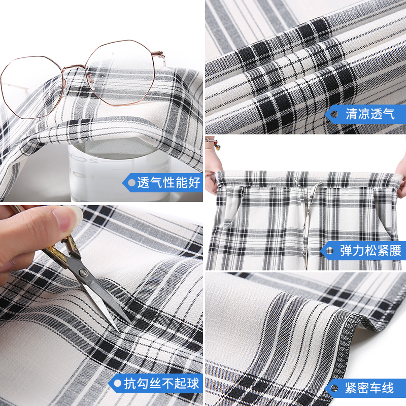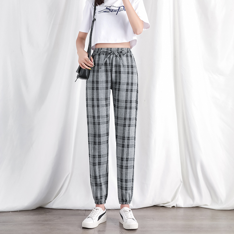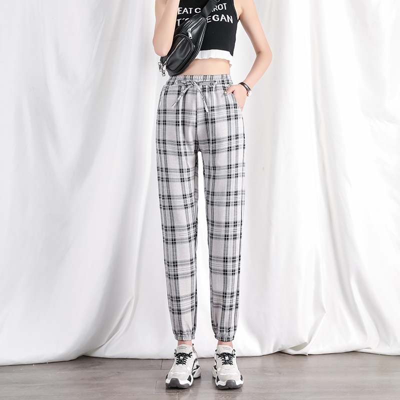 Black and white Plaid Pants Woman Spring Summer Slim cotton linen Loose Beam Footed Pants 2021 New Casual Pants