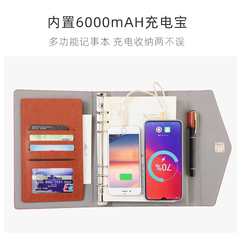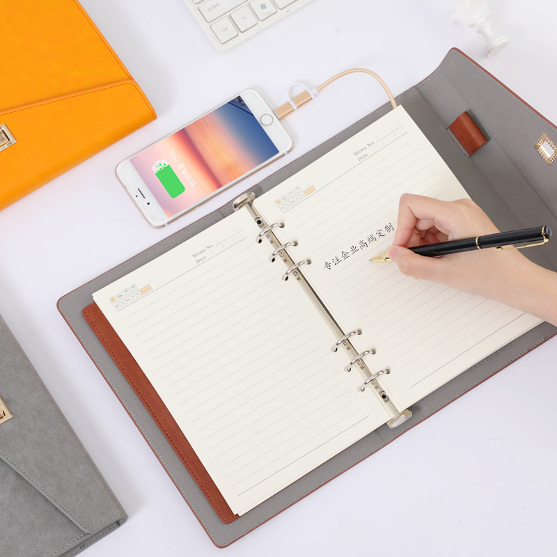 Business leather face charging notebook multifunction action power notepad detachable a5 loose-leaf book with U disc mobile charging notebook enterprise to send courtesy upscale gift box dress custom logo
