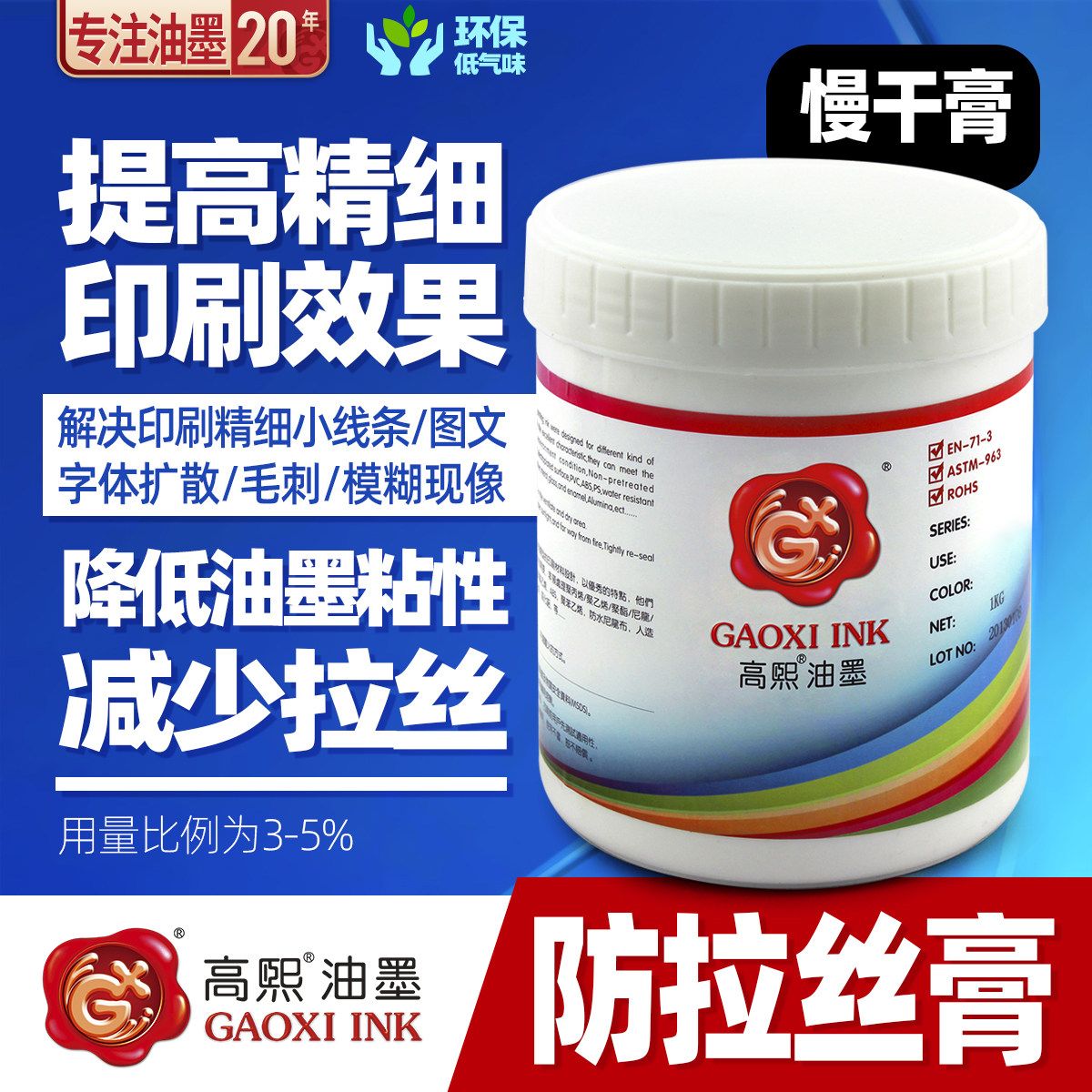 Gaoxi ST1 slow drying paste anti-drawing paste screen printing screen printing pad printing defoamer brightener leveling agent